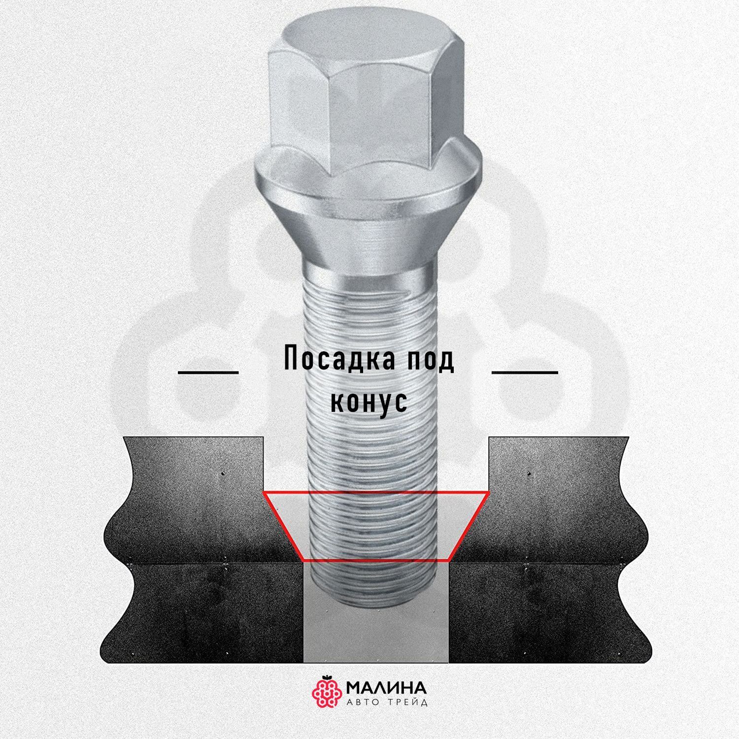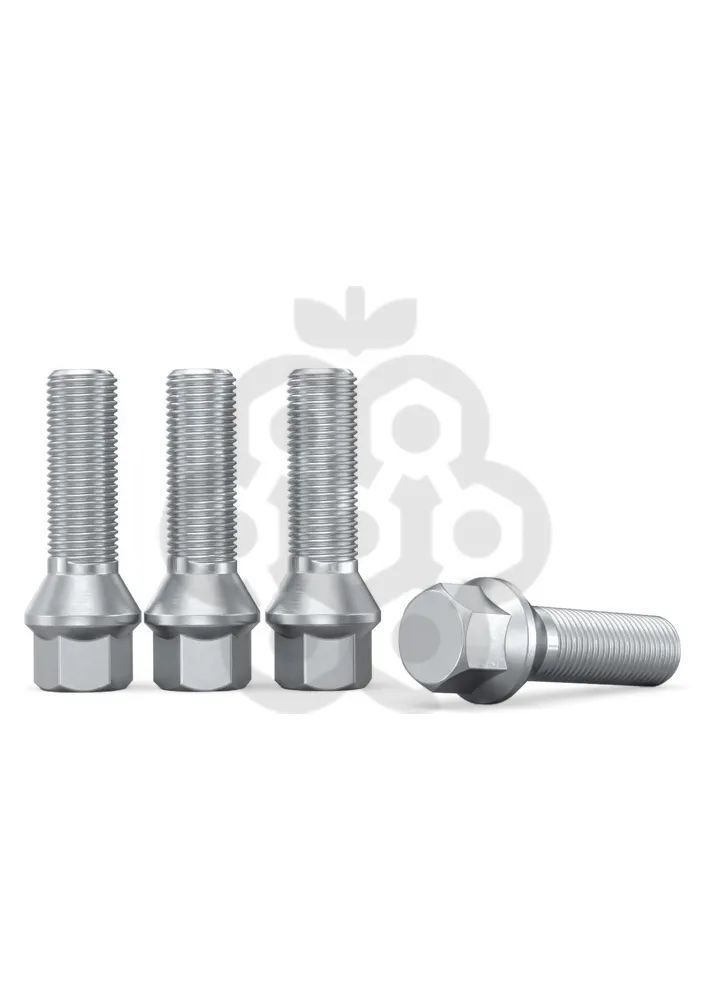 Болт колёсный М14x1.5 длина 55мм ключ 17мм конус цинк (20 шт) для Audi, Mercedes, Skoda, VW, Porsche, Seat, Jaecoo, Zeekr, Haval, Geely Monjaro, Voyah