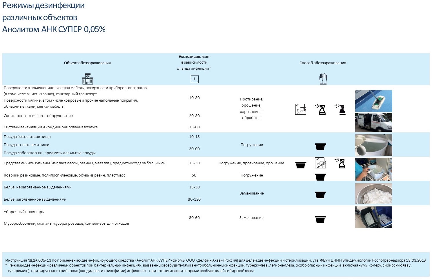 - для обеззараживания уборочного материала и инвентаря.