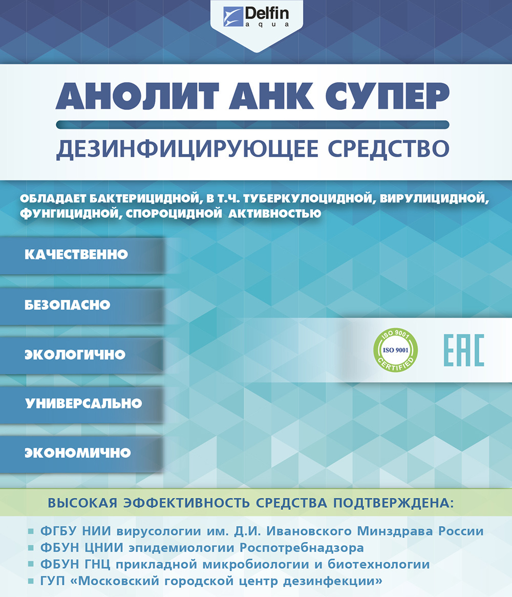 «АНОЛИТ АНК Супер» — инновационная разработка компании Delfin Aqua, не имеющая аналогов. Это уникальное высокоэффективное дезинфицирующее средство нового поколения, совершенно нетоксичное и безопасное.